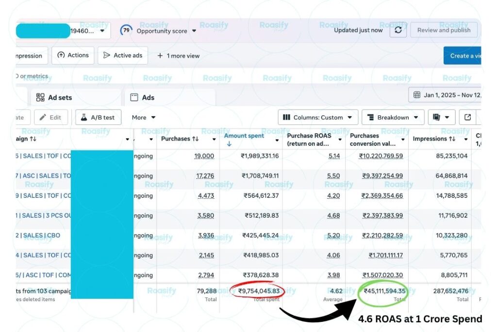 Before working with Roasify Media, our ad spend was like a leaky bucket ₹3–4 lakh in monthly burn with inconsistent returns. Within 6 weeks, their team restructured our entire funnel. Our ROAS jumped from 1.8x to 4.5x, and we finally scaled past ₹1 crore/month profitably. The best part? It’s still consistent 6 months later.”